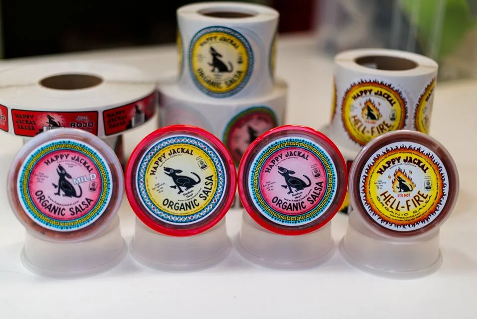 Dip a chip into Happy Jackal salsa and experience the bolt taste of fresh organic ingredients. If you enjoy spicy we recommend pouring Hellfire salsa on just about anything from a Denver omelette to a pastrami sandwich to your favorite chips. Together garlic and habanero are the flavors that bring a tear to your eye and a sting to your dish.